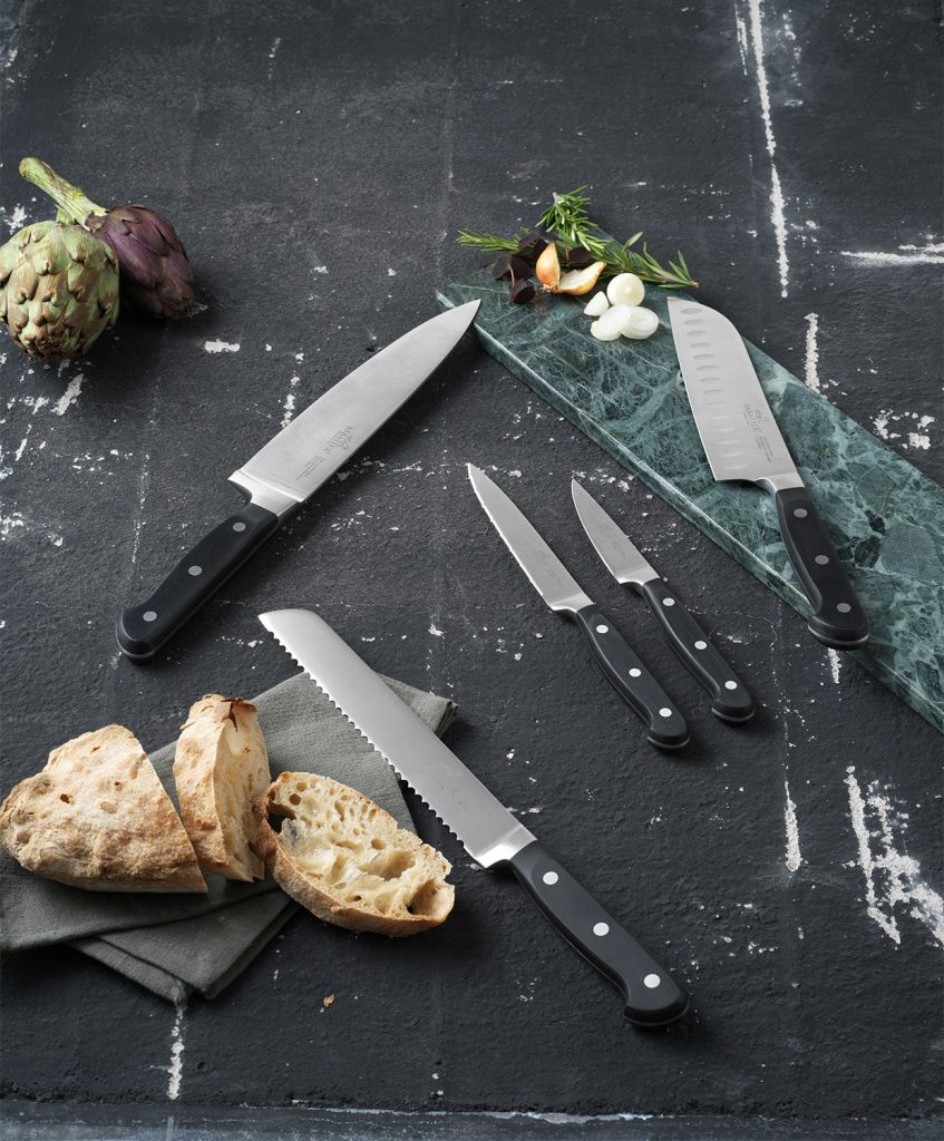 Selv om moderne maskiner for længst har erstattet hammer og ambolt, bliver flere dele i den lange produktionsproces stadig udført i hånden. Resultatet er noget af det bedste, der kan leveres i knive.